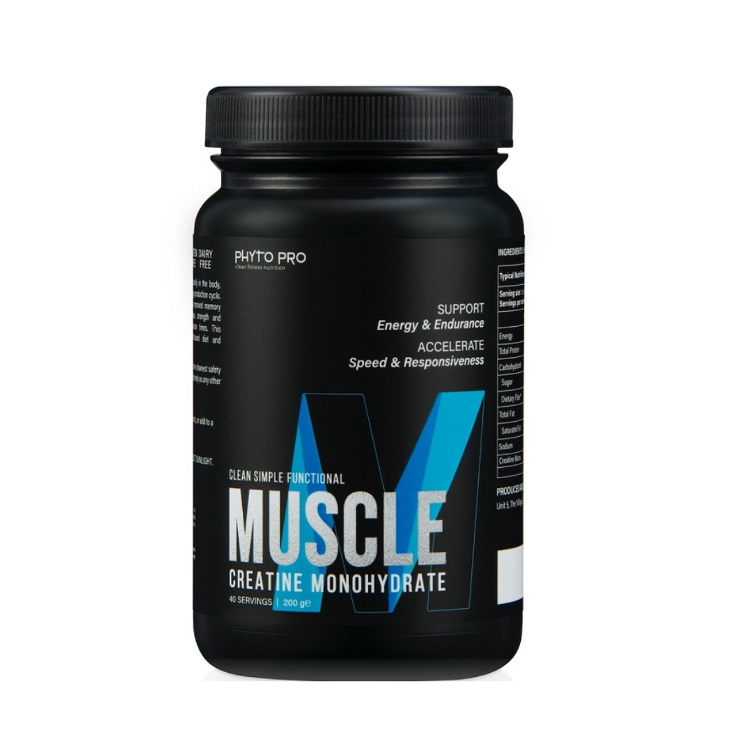 Phyto Pro Creatine Monohydrate Powder contains creatine, an organic compound found naturally in the body, where it is one of the drivers of the ATP/energy production cycle. It is either sourced from your diet or made in your liver and kidneys. Once in the body it is stored in the muscle tissue as either creatine or phosphocreatine.