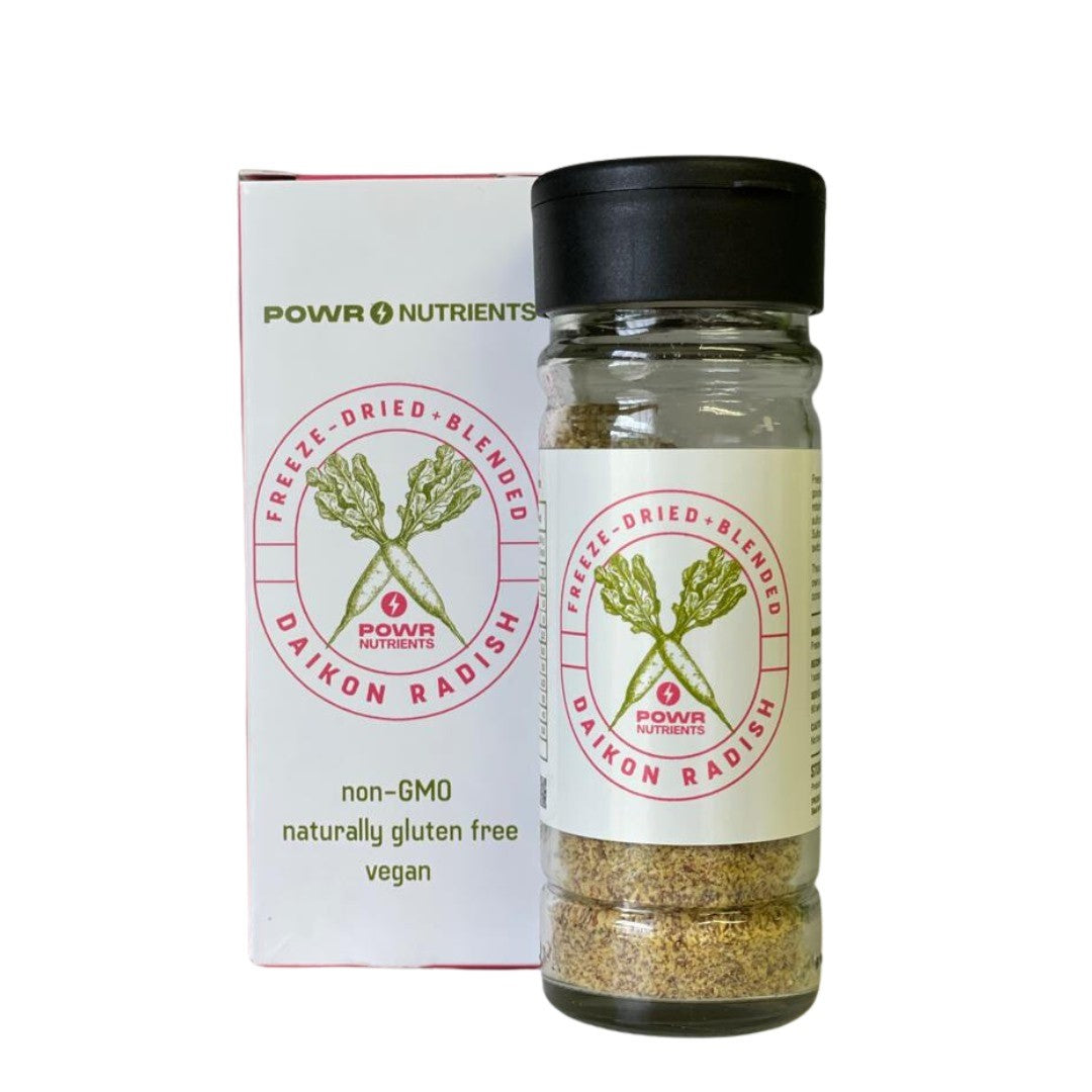 Daikon radish seeds by Powr Nutrients are a natural, powerful, and nutritious food. The blended seeds have a subtle nutty flavour, which can be added to any meal easily. Freeze-drying technology retains the highest bioavailability of sulforaphene, which is released when ingested. Sulforaphene is a bioactive molecule that can turn on powerful cell-defence mechanisms in the body