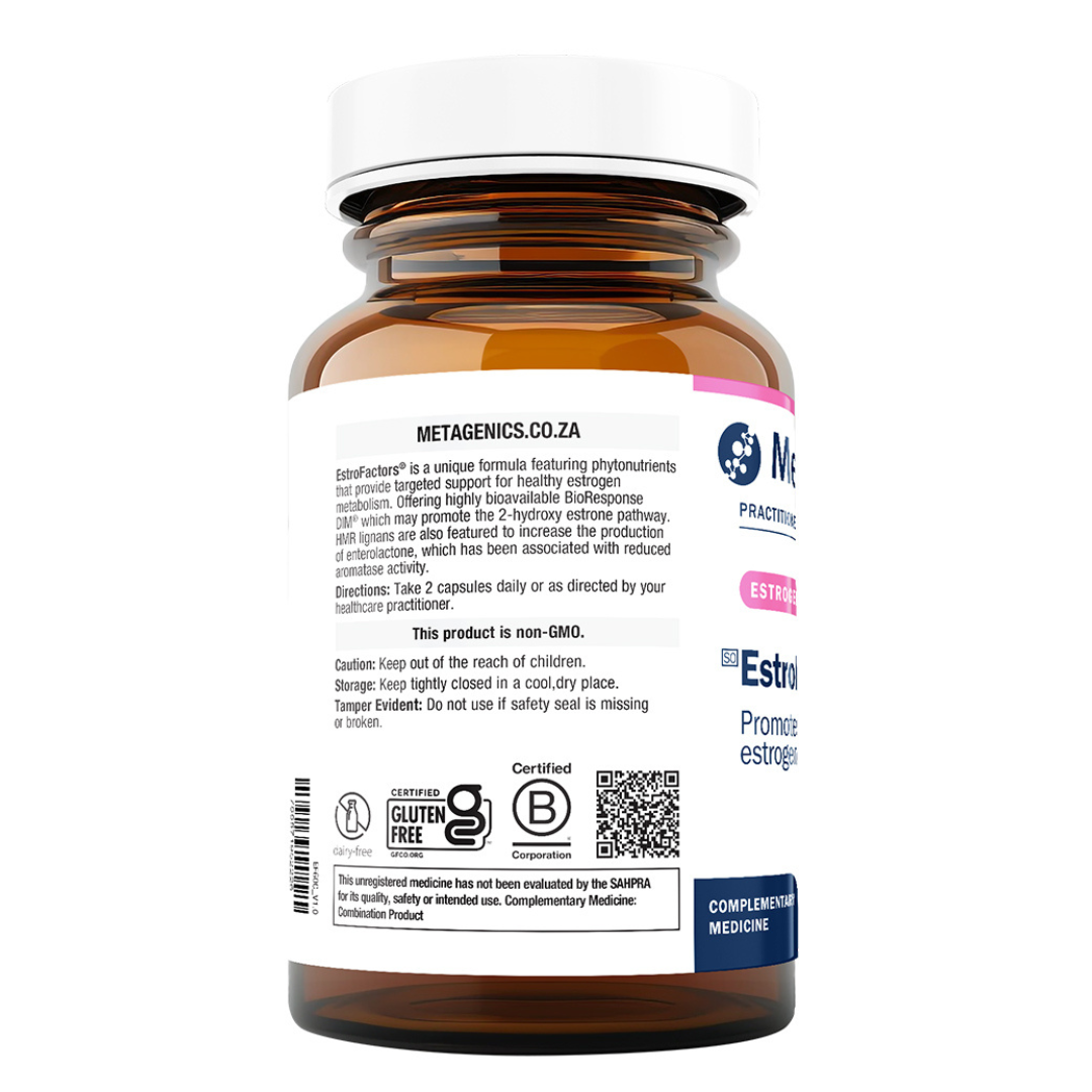 EstroFactors® by Metagenics is a unique formula featuring phytonutrients that provide targeted support for healthy estrogen metabolism. Offering highly bioavailable BioResponse DIM® which may promote the 2-hydroxy estrone pathway. HMR lignans are also featured to increase the production of enterolactone, which has been associated with reduced aromatase activity.