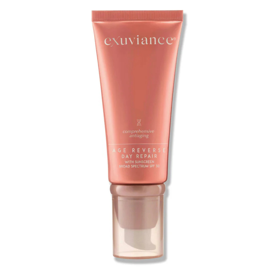 Help visibly reverse key signs of aging during the day with this daily face cream with sunscreen broad spectrum SPF face cream and retinol. Age Reverse Day Repair SPF 30 by Exuviance contains a proprietary multi-tasking ingredient complex with everything you need to restore smooth, firm skin and a more even complexion. UV filters and a triple antioxidant formula containing pomegranate and vitamins A and E shield skin from daily environmental aggressors and help fend off aging free radicals.
