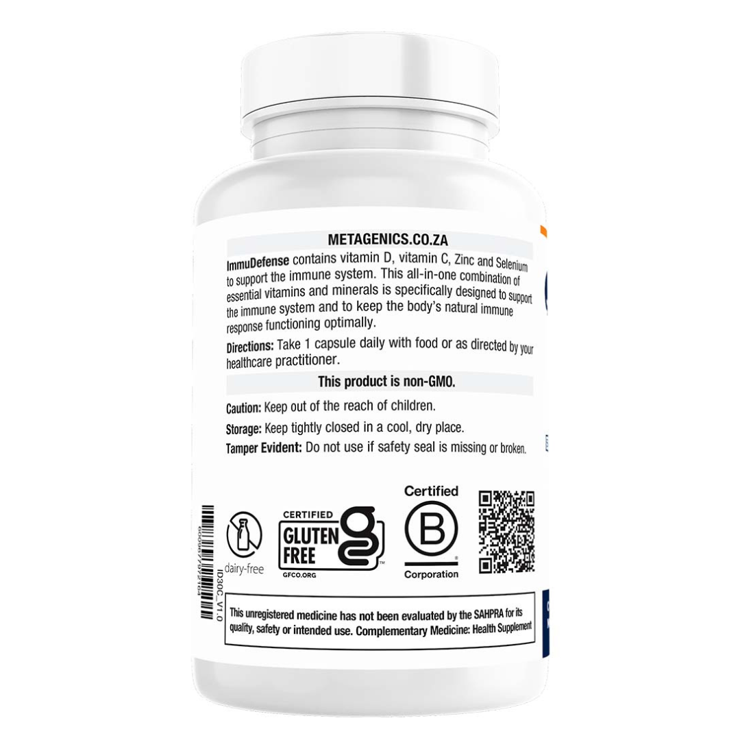 ImmuDefense by Metagenics contains vitamin D, vitamin C, zinc, and selenium to support the immune system. This all-in-one combination of essential vitamins and minerals is specifically designed to support the immune system and to keep the body’s natural immune response functioning optimally.