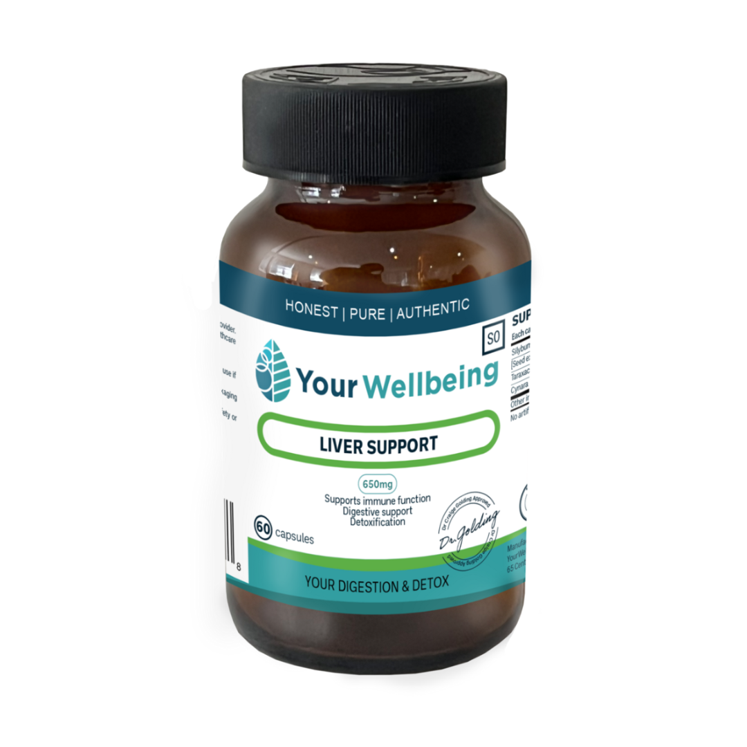 Liver Support by Your Wellbeing is a proprietary blend that contains a combination of milk thistle, dandelion and artichoke that has been specifically formulated to assist the liver in the process of phase II detoxification. The combination has been shown to protect the liver against the toxicity of alcohol and many other toxins and can stimulate regeneration of the liver. It may also protect the liver from the toxic effects of excessive iron.
