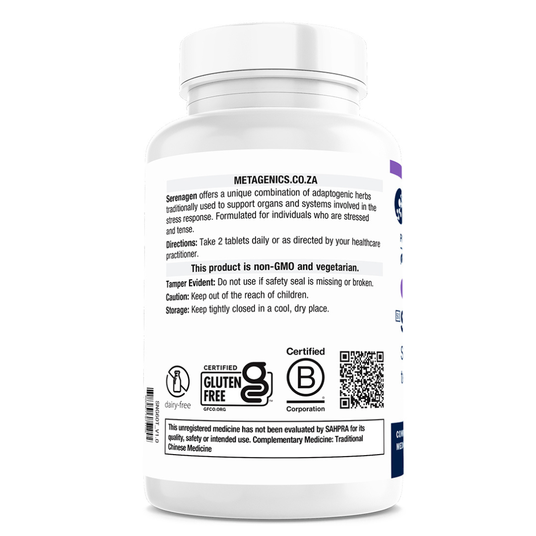 Serenagen® by Metagenics offers a unique combination of adaptogenic herbs traditionally used to support organs and systems involved in the stress response. Formulated for individuals who are stressed and tense.