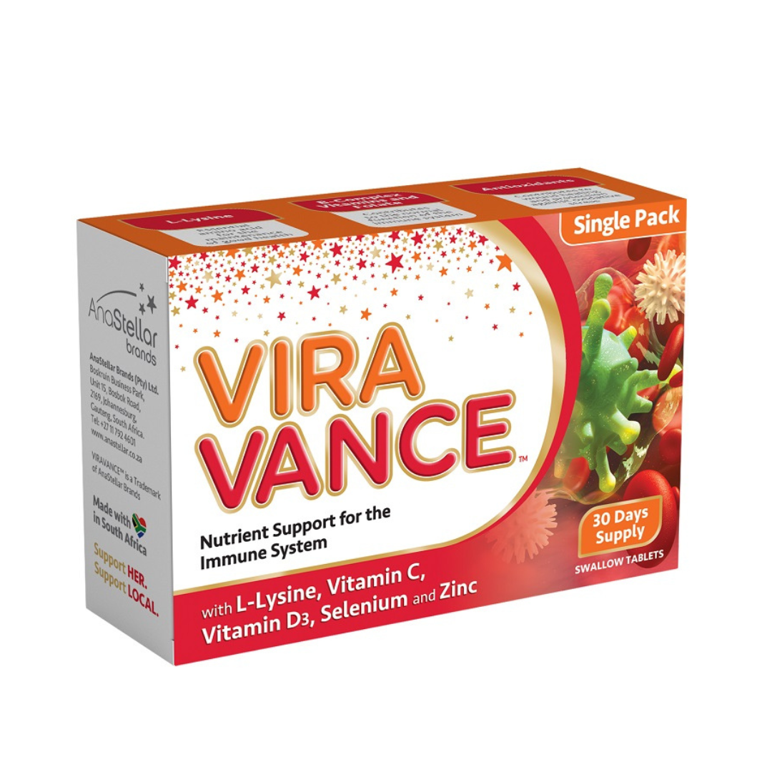 VIRAVANCE from AnaStellar is an immune support supplement that contains a unique combination of immune support vitamins and minerals such as vitamin C, vitamin D3, selenium, zinc, active folate, vitamin B3, vitamin B6 and active vitamin B12 with added L-lysine to assist in general good health. The nutrients in VIRAVANCE all work synergistically to help build the body’s immune system and support its functioning against pathogens that can cause illness.